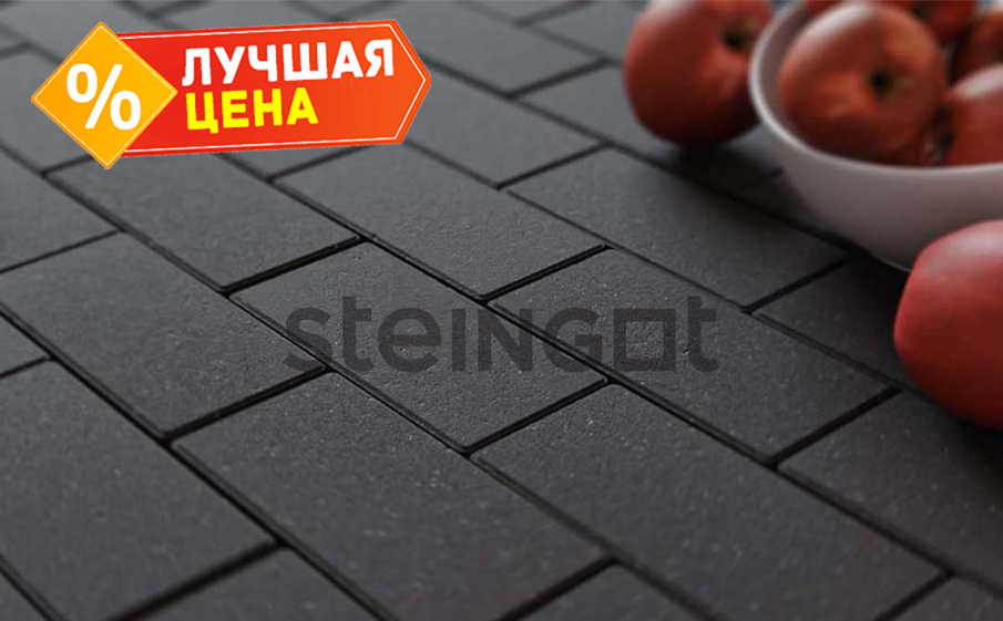 Плитка тротуарная Steingot Моно, Прямоугольник, фаска 1,5х1,5, черный, 200х100х60 мм